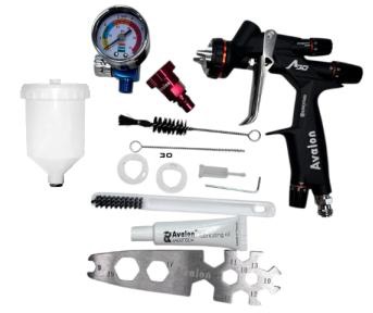 (pistool + beker + manometer + PPS-adapter + reinigingsset + afdichtingen + smeermiddel + sleutel)