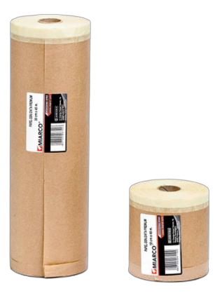 Kraftpapier met plakband aan de rand. Handig voor snel afplakken.